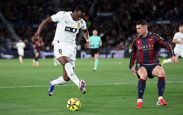 Striker Umar Sadiq opened his LaLiga account for Valencia and ended a ten month league goal drought in their 2-0 derby victory over Levante.